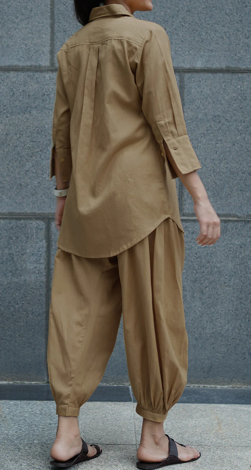 Slow Life is our ode to languid summer days and the feeling of stillness (irrespective of seasons). It has the roomiest pants (with the funnest twist). And the breeziest, roomiest shirt. Together, they’ll make you want to take it slow. As summers should be.